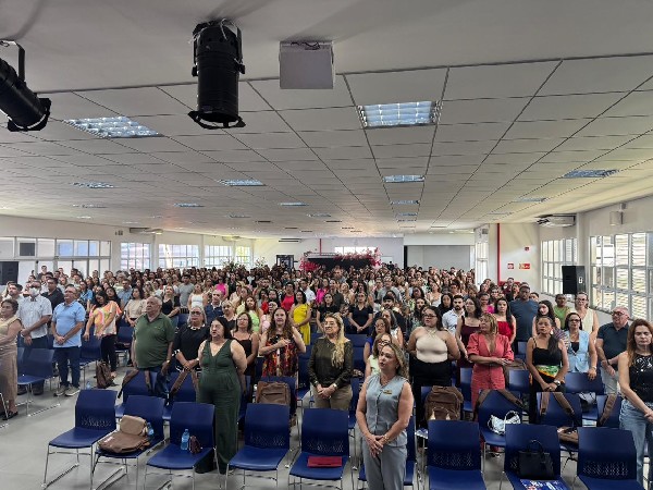 Na tarde desta quarta-feira (4), evento no auditório do Sest/Senat reuniu profissionais da educação. O evento contou com a presença da secretária Joseanne Maciel, adjunta Irineide Leandro, e equipe da Secretaria de Educação, além de representantes do Conselho Municipal de Educação, Sinfumc, na pessoa de Elinete Lourenço e da gerente da Nona Regional, Fernanda Chagas.