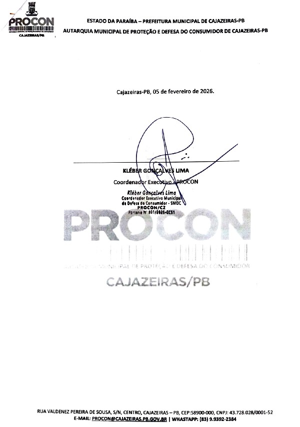 O Procon de Cajazeiras colocou, ainda, sua equipe à disposição das secretarias do Meio Ambiente e Planejamento para trabalharem em conjunto, tendo em vista a vasta experiência de seu time em colaborações com o Poder Público e o Ministério Público em questões de relevância coletiva, bem como em razão de sua própria competência legal no resguardo à prevenção e proteção coletiva da saúde e segurança dos consumidores.