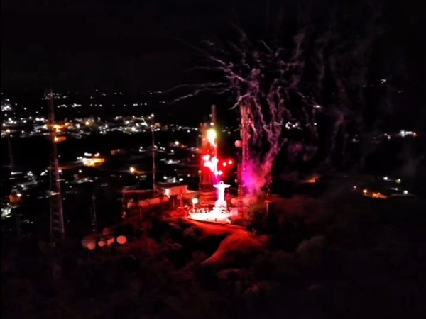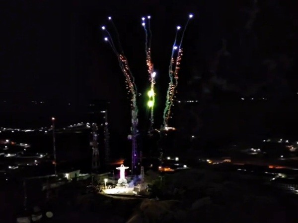 Queima de fogos no Morro do Cristo Rei ilumina a virada do ano em Cajazeiras