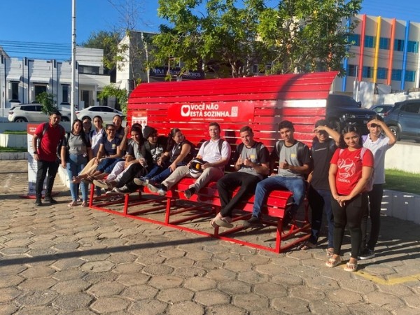 A campanha de conscientização e combate à violência contra a mulher tem mobilizado estudantes de diferentes instituições de ensino públicas e privadas do município. Como parte das ações educativas, turmas de alunos e professores têm realizado visitas ao Banco Vermelho, espaço simbólico criado para chamar a atenção da sociedade para a importância da prevenção e do enfrentamento à violência contra mulheres.