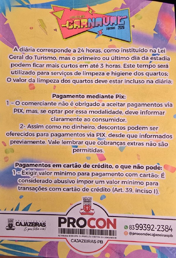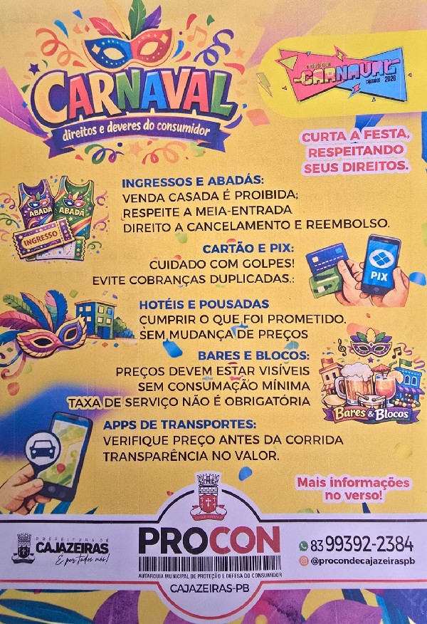 Cartilha do Procon orienta sobre informações básicas para o consumidor no carnaval de Cajazeiras