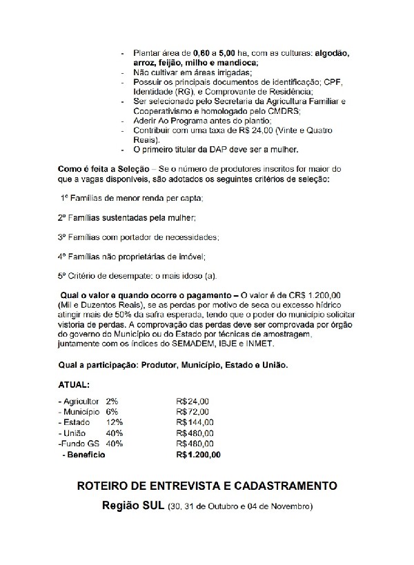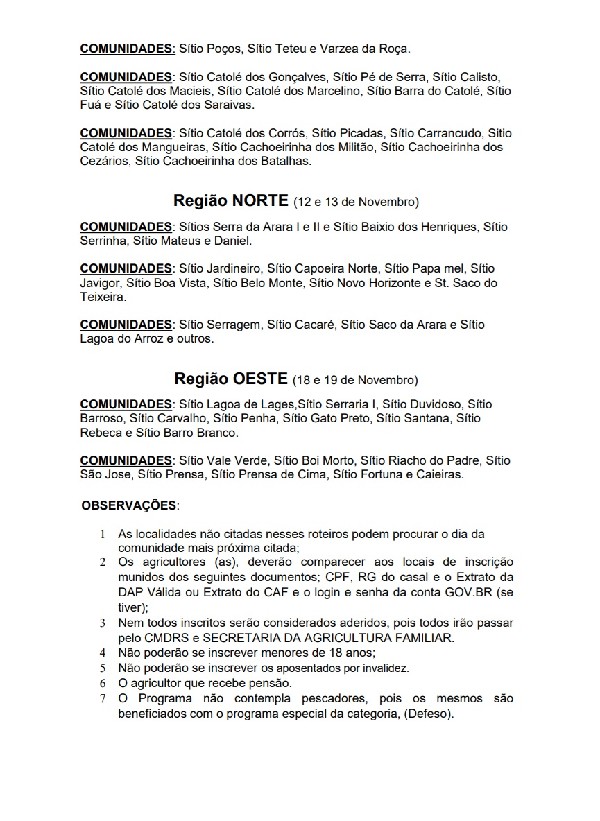 A Prefeitura de Cajazeiras através da Secretaria de Desenvolvimento Rural divulgou nesta segunda-feira (27) o cronograma do programa Garantia Safra 2025-2026.