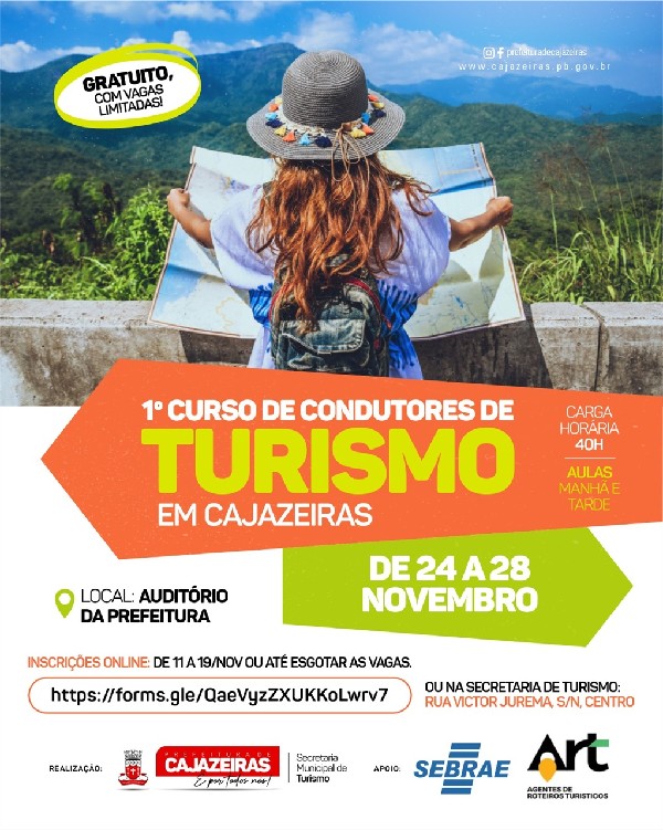 A Prefeitura Municipal através da Secretaria de Turismo estará promovendo entre os dias 24 e 28 de novembro o 1º curso de Acompanhantes de Turismo em Cajazeiras.