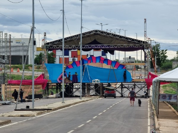 A estrutura do evento segue em ritmo acelerado, com a montagem dos camarotes e do palco em andamento, enquanto os banheiros químicos já foram instalados para garantir mais conforto ao público.