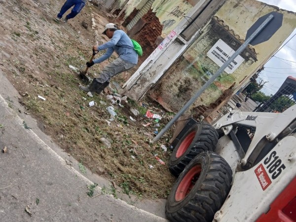 As equipes executam a limpeza de praças, com serviços de capinação, além do recolhimento de entulhos e resíduos de podações, contribuindo para a organização dos espaços públicos e a prevenção de problemas ambientais.