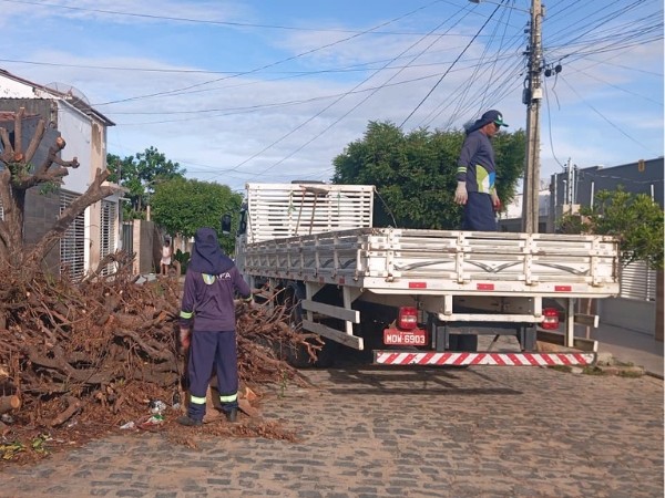 Nesta segunda-feira (6), a Prefeitura de Cajazeiras, por meio da Secretaria de Infraestrutura, iniciou um mutirão de serviços por toda a cidade, com foco maior no recolhimento de podas, que irá beneficiar toda a zona urbana. Também serão intensificados os trabalhos de reposição de lâmpadas, retirada de entulhos e desobstrução de ruas e bueiros.